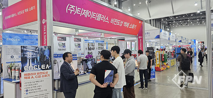 특수 소화기 전문업체 (주)티제이티플러스(대표 정상호)는 국내 최초로 한국소방산업기술원으로부터 AㆍC급 인증을 받은 전기화재 전용 강화액 소화기를 전시해 관람객의 발길을 사로잡았다.