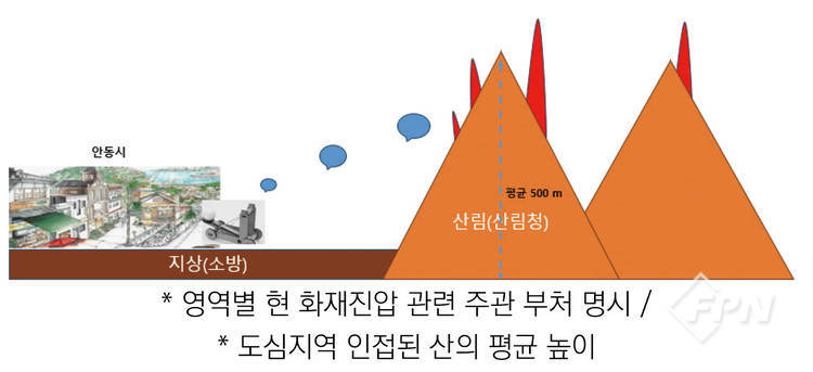 그간의 산불은 많은 면적의 산림이나 주요 문화재가 소실되는 데 그쳤지만 이번 산불은 주거지역 또는 도심으로 확산했다. 그런데 그냥 무기력하게 지켜볼 수밖에 없었다.