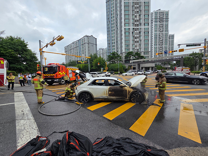 [FPN 최누리 기자] = 21일 오전 5시 40분께 충남 천안시 청당동의 한 아파트 지하주차장 내 충전 중이던 현대 아이오닉5 전기차에서 불이 났다.