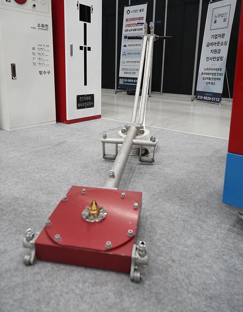 이번 전시회에선 전기차 화재 시 하부 배터리를 직접 천공해 내부로 물을 방사할 수 있는 ‘전기차 화재 배터리 천공 장비’를 참관객에게 소개했다