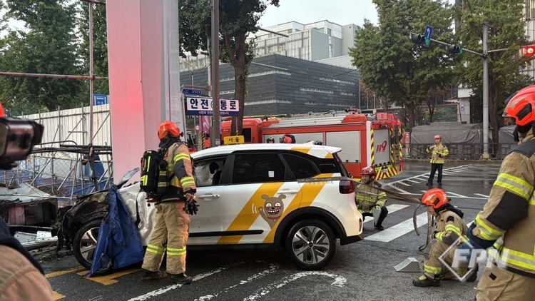 소방서에 따르면 이날 오전 5시 56분께 인의동 신축공사 현장에서 택시가 공사장 펜스와 충돌한 뒤 택시 엔진룸에 불이 났다. 당시 택시에는 운전자와 승객 1명이 타고 있었다.