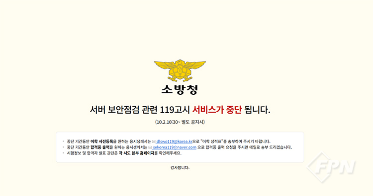 ![]() ▲ 소방공무원 채용 사이트인 '119고시' 공지문 © FPN |
