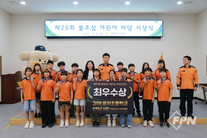 [FPN 정재우 기자] = 김해서부소방서(서장 윤영찬) 관내 율하초등학교 5학년 6반이 제25회 불조심 어린이마당 예선평가 대회에서 우수한 성적을 거두며 경상남도 1등, 전국대회 1등을 거머쥐었다고 20일 밝혔다.