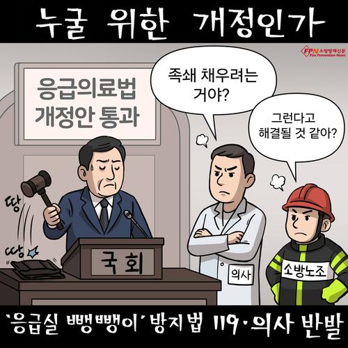 [이수열의 소방 만평] 국회 통과한 ‘응급의료법 개정안’ 두고 갑론을박