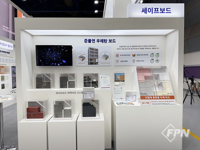 건축 장식 자재 기업 (주)LX하우시스는 주거ㆍ상업용 건축물 등에 적용되는 내ㆍ외부용 단열재 페놀폼 보드(PF보드)를 선보였다.