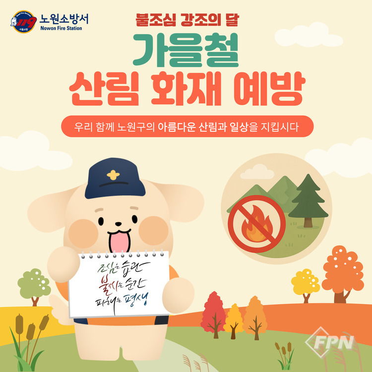 [FPN 정재우 기자] = 노원소방서(서장 진광미)는 가을철 산림 화재 예방을 위해 산행 안전수칙 홍보를 강화한다고 13일 밝혔다.