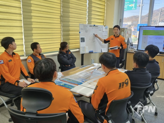 훈련은 도상훈련과 실제 출동ㆍ훈련 사례 복기 방식으로 진행됐다. 평가관이 제시한 복합 재난 상황에 대해 부서원들이 초동 조치부터 인명구조, 화재진압까지 단계별 대응 전략을 수립하고 발표했다.