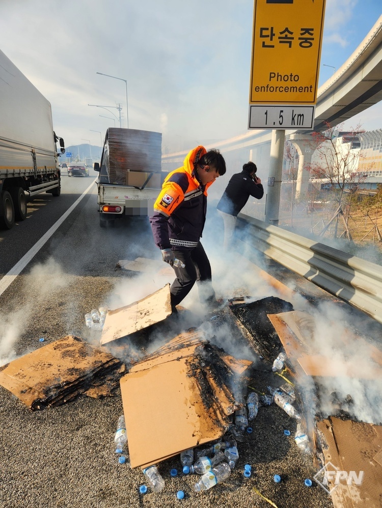 소방서에 따르면 이날 오전 10시 19분께 서하남IC에서 송파IC 방향으로 주행하던 화물차 적재함에 화재가 발생했다는 신고가 송파소방서에 접수됐다. 다만 운전 중이던 신고자가 정확한 위치를 특정하기 어려워 출동대가 현장 접근에 어려움을 겪고 있었다.