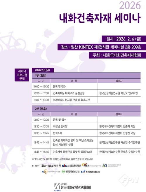 한국내화건축자재협회, 내달 6일 일산 킨텍스서 세미나건축자재등 내화구조 품질인정ㆍ건축물 화재확산 방지 및 소화성능 향상 기술개발 등 주제