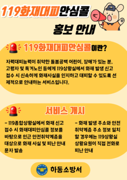 ‘119화재대피안심콜 서비스’는 화재 발생 시 대피에 어려움이 있는 대상자의 정보를 사전에 등록해 119 신고 접수 단계부터 맞춤형 대피 지원을 제공하는 서비스다. 사용승인 후 20년 이상 경과된 노후아파트의 화재안전 관리를 강화하기 위해 도입됐다.