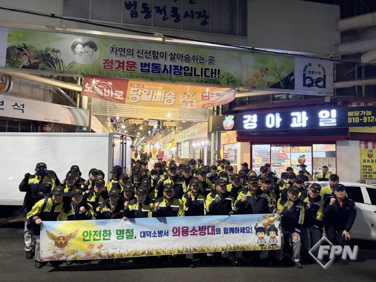 [FPN 정재우 기자] = 대덕소방서(서장 남득우)는 의용소방대(대장 이대식)가 지난 5일 법동시장에서 설 명절 대비 화재 예방 캠페인을 펼쳤다고 밝혔다.