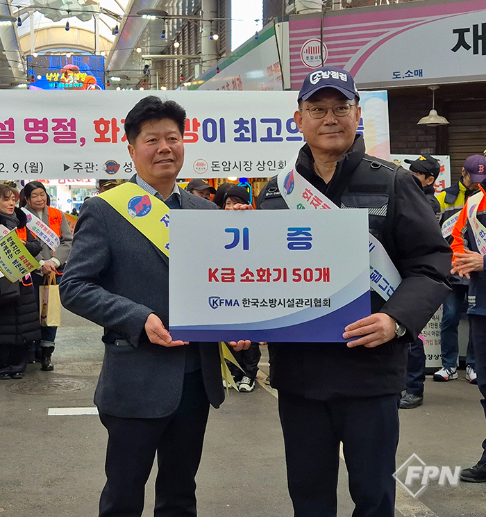 이기배 회장은 “전통시장의 화재 안전망을 구축하는 데 일조하고자 이번 기증을 결정했다”며 “전달된 소화기가 음식점 밀집 구역의 화재 안전을 지키는 실질적인 초기 대응 수단으로 활용되길 바란다”고 전했다.