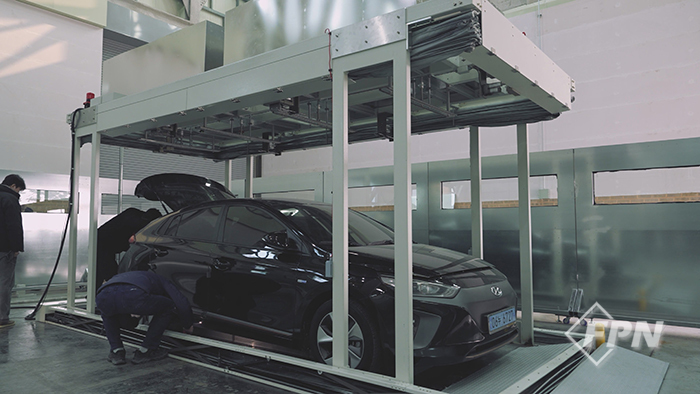 이번 시험은 충남 홍성군 소재 KTR 방재기술시험센터에서 전기차 배터리팩과 전기차를 대상으로 진행됐다. ‘GEVF1’은 전기차에서 화재가 발생하면 이를 조기에 감지하고 진압해주는 시스템이다. 열화상 카메라ㆍ오프가스 센서와 방화스크린, 헤드, 수조 등으로 구성된다.