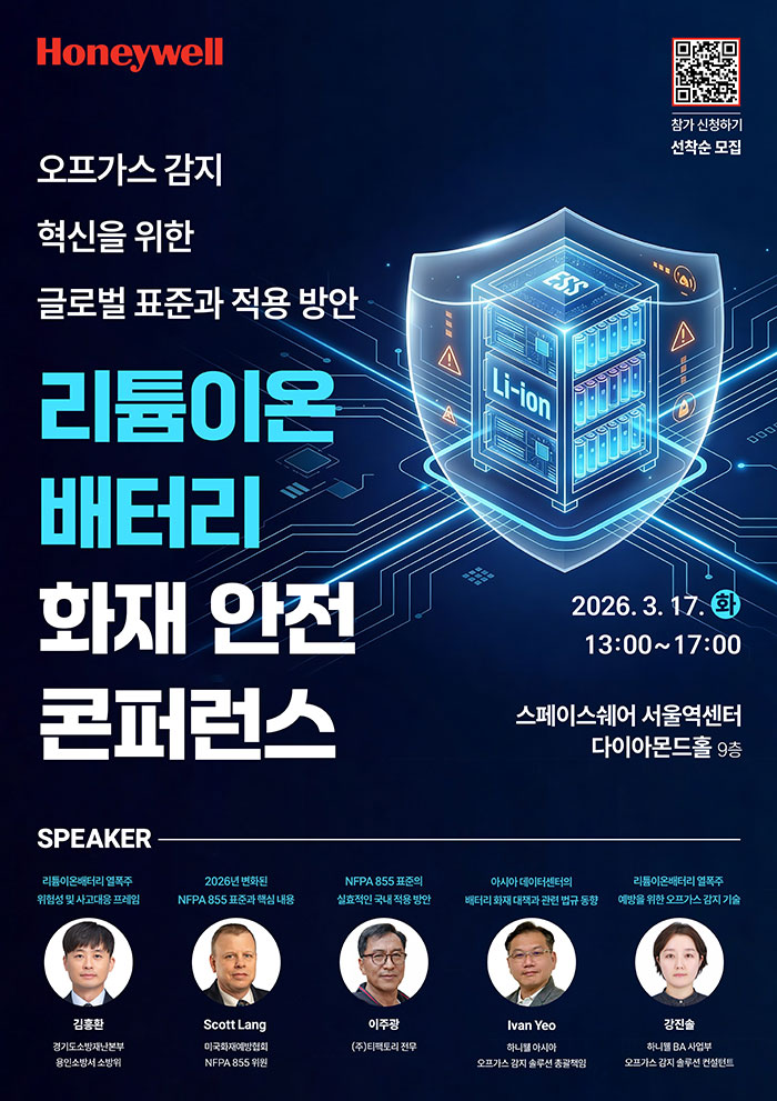 주최 측인 한국하니웰 관계자는 “단순한 이론 공유를 넘어 리튬이온배터리 화재의 골든타임을 확보할 수 있는 실질적인 해법을 제시하는 자리가 될 것”이라며 “관련 업계 종사자들에게는 놓쳐선 안 될 기회”라고 강조했다.