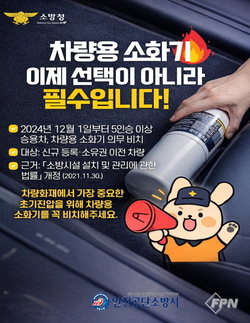 [FPN 정재우 기자] = 공단소방서(서장 허석경)는 차랑용 소화기 비치를 적극 홍보 중이라고 밝혔다.