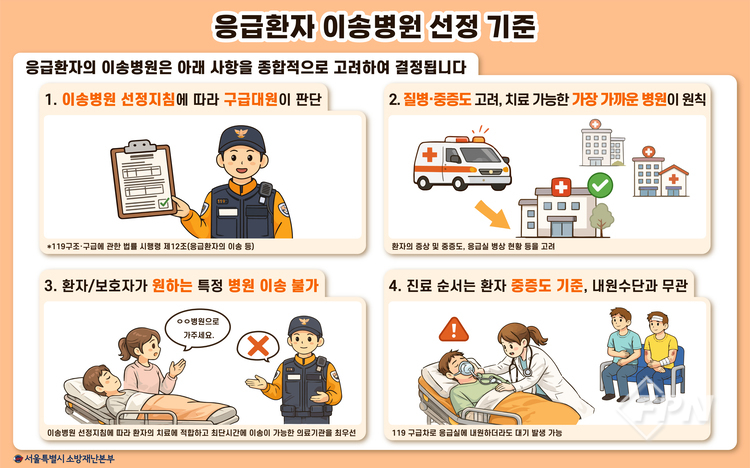 [FPN 정재우 기자] = 금천소방서(서장 이웅기)는 119구급대원의 응급환자 이송병원 선정 기준에 대해 안내한다고 25일 밝혔다.