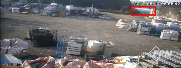 또 다른 각도에서 촬영 각과 연기 목격지점을 확인하기 위해 원거리에서 비교했다. CCTV와 연기가 분출한 부분을 촬영했다. 적색으로 표시된 부분에서 연기가 분출됐다. 발화지점을 추론하기 위해 여러 각도에서 연기 목격지점을 확인했다.