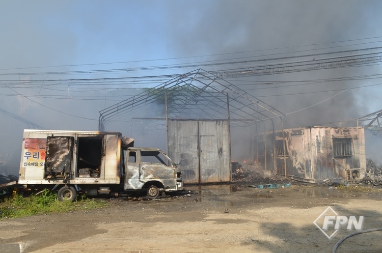 비닐하우스를 사무실과 창고, 공장으로 사용하던 업체 세 곳이 모두 전소했다. 비닐하우스는 일단 화재가 시작되면 가연물과 관계없이 대부분 전소된다. 내부에 가연물이 많다면 더 그렇다.