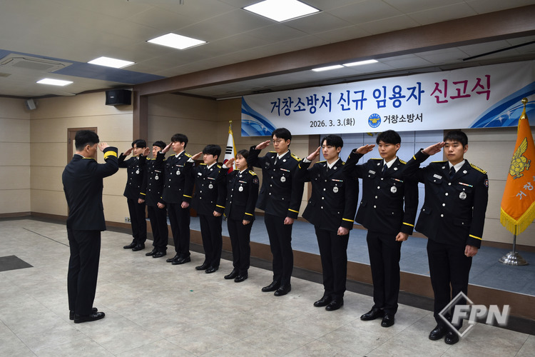 [FPN 정재우 기자] = 거창소방서(서장 강호봉)가 3일 서장실에서 2026년 신규 소방공무원 9명에 대한 임용식을 개최했다.