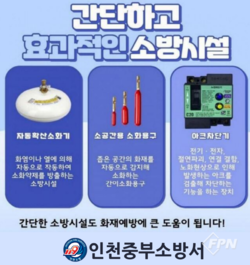 [FPN 정재우 기자] = 인천중부소방서(서장 김현)는 겨울철 화재 예방과 화재 초기 대응 강화를 위해 소공간용 소화용구, 자동확산소화기, 아크차단기 설치를 홍보한다고 23일 밝혔다.