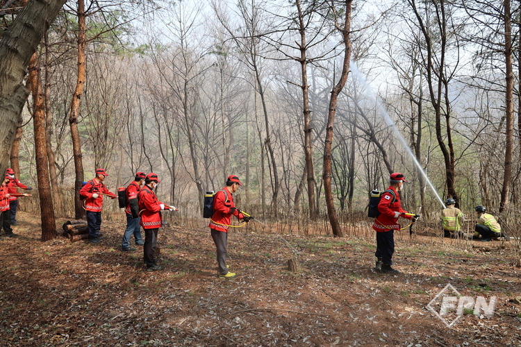 [FPN 정재우 기자] = 서초소방서(서장 김명호)가 26일 오전 청계산 청계골 일대에서 2026년 봄철 산림화재 진압훈련을 실시했다.