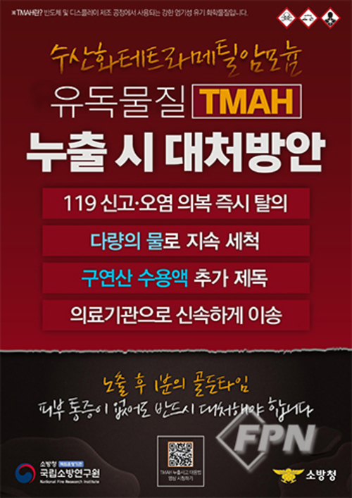 국립소방연구원, TMAH 사고 대응 요령 리플릿 배포오염 의복 즉시 탈의, 환부 세척 지속 등 핵심 수칙 담겨