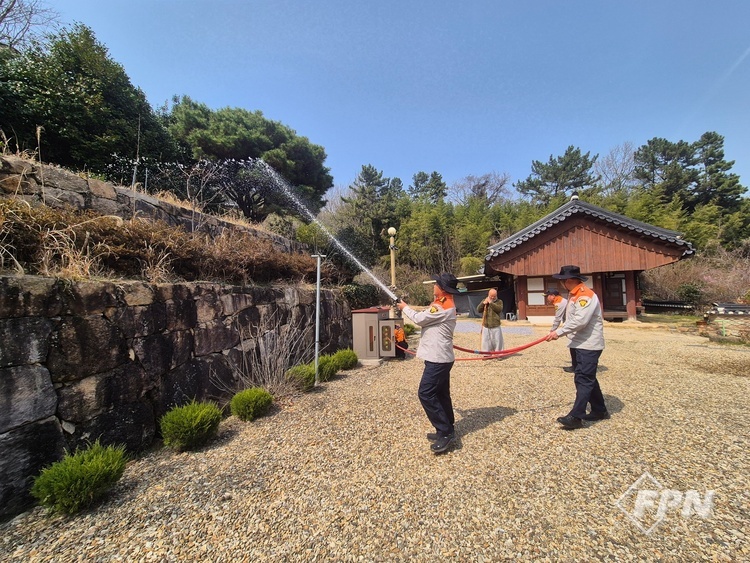 소방서는 산불 예방을 위해 운영 중인 ‘예비주수의 날’과 연계해 의용소방대와 함께 산림인접 사찰, 목조건축물 등 일대에서 예비주수 활동 중이다.