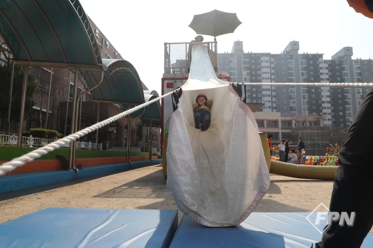 피난시설인 구조대를 직접 이용해 높은 곳에서 지상으로 탈출하는 실습은 긴급 상황에서 당황하지 않고 대처할 수 있는 자신감을 심어주는 데 중점을 둔 교육이다.