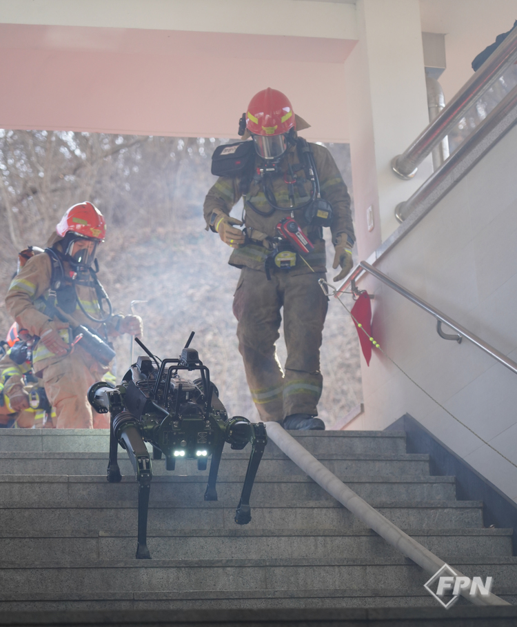 유해가스나 붕괴 위험으로 소방관이 섣불리 진입하기 어려운 고위험 현장엔 사족보행 로봇이 투입된다.