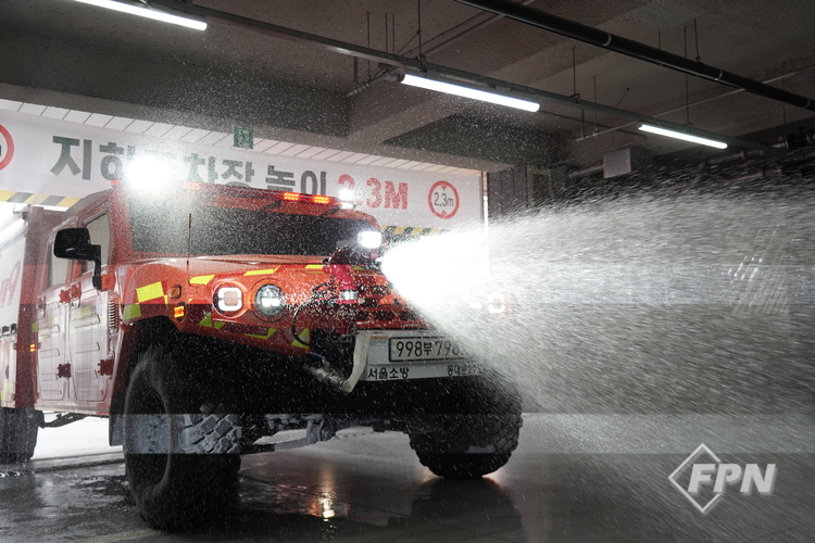 전방 범퍼에 설치된 방수총은 조이스틱을 이용해 전동식으로 제어되며 1525LPM 이상의 방수량을 자랑한다. 후방 65㎜ 보수구를 통해 펌프차나 옥내외 소화전으로부터 용수를 공급받을 수 있고 짙은 연기로 빛이 차단된 환경에선 전면 열화상 카메라로 시야 확보가 가능하다.