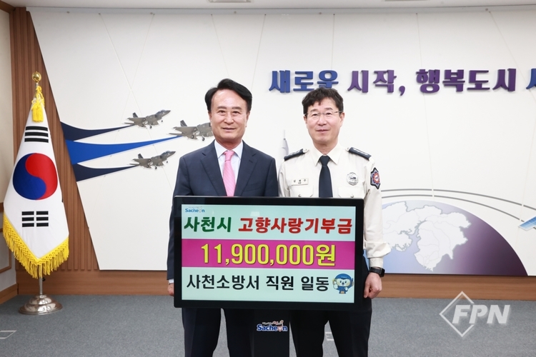 [FPN 정재우 기자] = 사천소방서(서장 김재수)는 8일 사천시청 시장실에서 지역 발전과 경제 활성화를 위한 고향사랑기부금 전달식을 가졌다고 밝혔다.