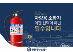 [FPN 정재우 기자] = 계양소방서(서장 송태철)는 완연한 봄을 맞아 주말 나들이 등 장거리 차량 이동이 증가함에 따라 차량 화재 사고에 대비해 ‘차량용 소화기’ 비치와 상태 점검을 당부한다고 17일 밝혔다.
