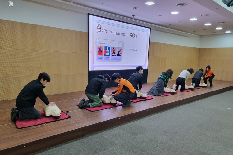 교육은 ▲심폐소생술 이론 및 실습 ▲자동심장충격기(AED) 사용법 ▲기도폐쇄 등 응급상황 대처요령 등 실제 상황에서 즉시 활용할 수 있는 실습 중심으로 진행됐다. 특히 참가자들이 마네킹을 활용해 반복 실습을 진행하며 현장 대응능력을 높이는 데 중점을 뒀다.