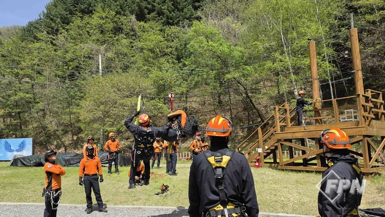 [FPN 정재우 기자] = 홍천소방서(서장 이강우)가 21일 가리산 레포츠파크에서 집라인 멈춤(고립)사고 대비 4월 특별구조훈련을 실시했다.