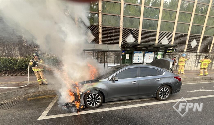 [FPN 김태윤 기자] = 11일 오전 9시 2분께 경기 과천시 중앙동의 한 도로를 주행 중이던 차량에서 불이 났다.