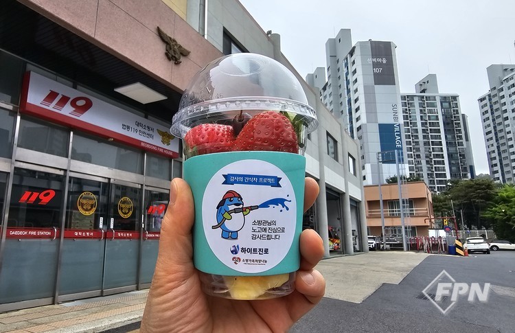 [FPN 정재우 기자] = 대덕소방서(서장 남득우)는 22일 (주)하이트진로의 후원으로 소방공무원들의 노고에 감사를 전하는 ‘감사의 간식차’ 행사가 성료됐다고 밝혔다.