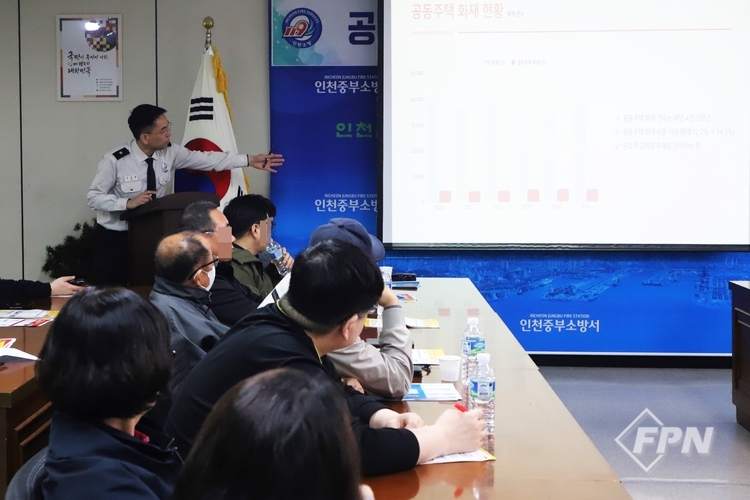 [FPN 정재우 기자] = 인천중부소방서(서장 김현)가 22일 본서에서 공동주택 관리소장 등 관계인을 대상으로 봄철 주거시설 화재안전 강화를 위한 소방안전교육을 실시했다.