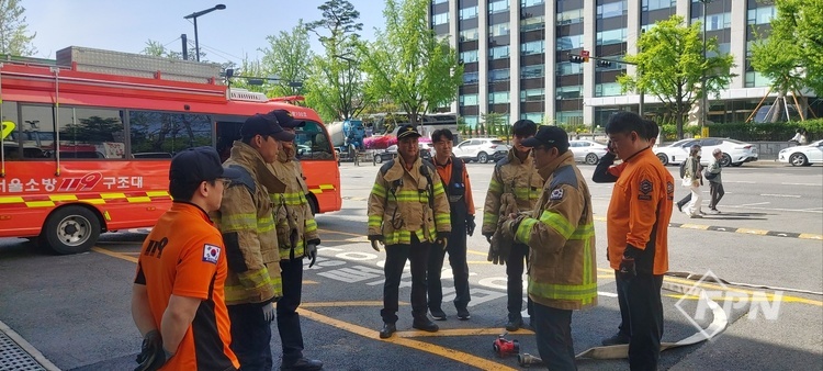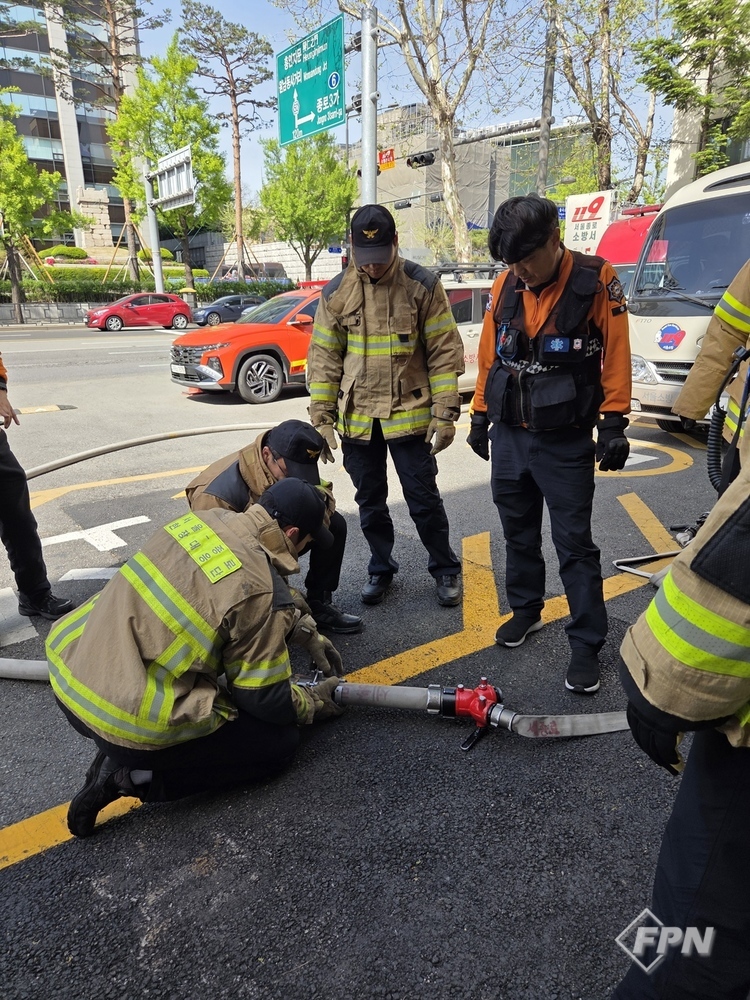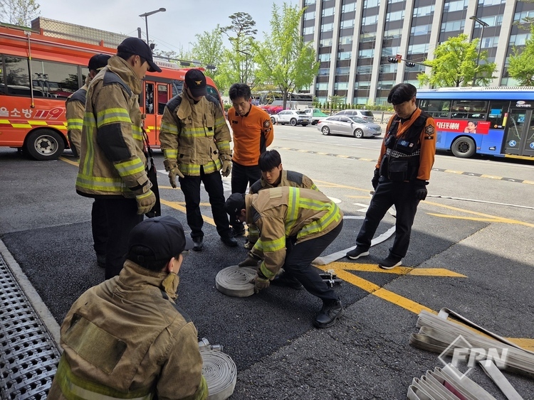훈련에는 현장대응단 화재진압대가 참여했다. 서울시 재난대응과가 ‘2025년 화재대응 역량강화 추진계획’의 일환으로 제작한 ‘알기 쉬운 수관 전개 훈련 가이드’가 활용됐다.
