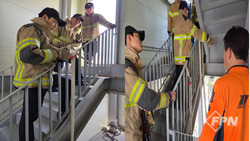 [FPN 정재우 기자] = 종로소방서(서장 장만석)는 23일 오후 본서 차고와 훈련탑에서 고층ㆍ협소공간 수관전개 훈련을 실시했다고 밝혔다.