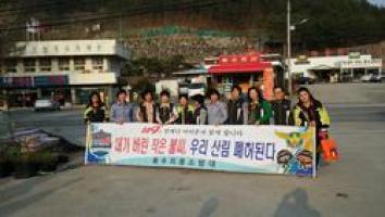 금산소방서(서장 김현묵)는 지난 9일 소방공무원과 복수면의용소방대(대장 김면수, 황경숙) 30명이 참석한 가운데 최근 건조한 날씨로 산불이 자주 발생됨에 따라 산불예방 교육 및 캠페인에 이어 환경정화를 실시했다고 밝혔다. 이날 화재예방은 봄철 기간중 산불로 인한 문화재 및 인명피해가 자주 발생됨에 따라 산불 화재예방 교육을 실시하고 복수면일대에서 캠페인 및 환경정화를 대대적으로 진행했다. 산불 예방 캠페인시 진압장비 점검, 산불 가상화재 진압 훈련, 비상연락망 확보 및 상황전파, 대원들 산불 화재진압시 안전사고 방지에 주력하기로 했다. 소방서 담당자는 “금산소방서 지역별 의용소방대원들이 자발적으로 나서서 산불예방 캠페인, 순찰 및 안전사고 방지를 위한 계도 활동을 지속적으로 실시해 소중한 산림을 지키는데 최선을 다하고 있다”고 말했다. 박정용 객원기자 yongpj@korea.kr