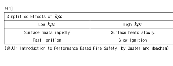 4. 온도와 연관된 주요사항(key considerations relative to temperature) 화재를 일으킬 수 있는 점화의 원인이 될 수 있는 화염, 스파크(spark) 등의 온도는 표2]에서 보는 바와 같이 대부분 물질의 점화온도(ignition temperature)보다 높다. 그러나 높은 온도의 점화원이 반드시 연소물질의 점화를 유발하는 것은 아니다. 점화가 되고 안되고의 여부에는 온도 외에 시간이라는 변수가 들어간다. 통상 예를 들어 아무리 높은 온도의 점화원이라 하더라도 연소물질과의 접촉시간이 짧으면 점화가 안될 것이다. 성냥불의 온도가 높더라도 아주 짧은 시간 동안 접촉하면 인체가 뜨거운 느낌을 크게 가지지 못하는 것과 같은 원리인 것이다. 또 다른 변수로는 연료가 되는 물질의 표면적과 무게를 들 수 있다. 예를 들어 종이, 사전, 그리고 합판은 근본적으로 같은 나무라는 물질로 만들어진 것이다. 그러나 점화의 용이성은 각각 큰 차이를 나타내게 되는 것이다. 표2]