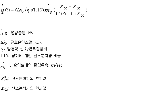다음에서는 두 가지의 식 모두를 기술하지만, 실질적으로 large scale calorimeter 혹은 cone calorimeter의 개방형 시스템(open system)에 사용되는 식을 중점으로 기술하겠다.