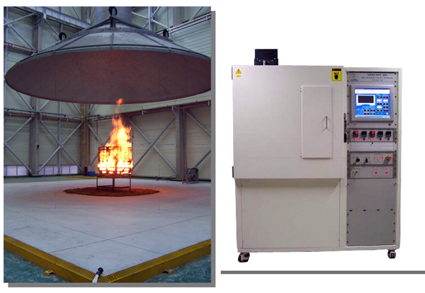 ‘화재평가시험기기’란 각 산업전반(건축, 운송, 섬유, 플라스틱, 전선)에 걸친 화재안전 규격들을 평가할 수 있는 시험기기를 말하며 거의 모든 난연 및 방염재료(방염제: 불꽃의 발생을 제압 또는 지연시키거나 화염전파속도를 감소시키기 위해 재료에 적용한 물질, 난연제: 연소율을 감소시키거나 착화를 늦추기 위해 재료에 적용하는 처리 또는 부가 물질, 참조 화재관련 용어집: ks f iso 13943)에 대한 적격 혹은 부적격을 판단하는 장비와 품질검사용 장비를 통칭한다. 대표적인 시험방법으로는 다음과 같다.