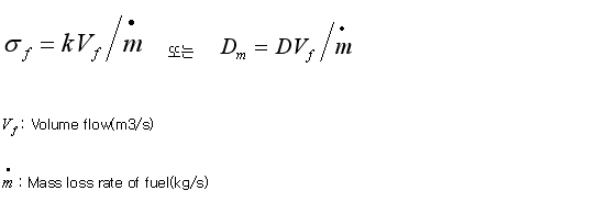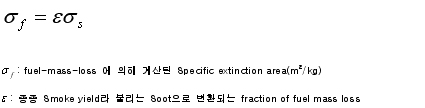 이때 대부분의 경우에는 soot의 질량을 고려하지 않기 때문에 연료(fuel)의 질량손실에 기초하여 specific extinction area를 구한다면 다음과 같이 표현될 수가 있다.