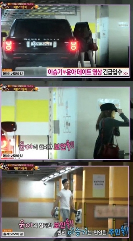 가수 이승기가 걸그룹 소녀시대 윤아와 결별했다. 13일 한 매체는 "이승기와 윤아가 교제 1년 9개월 만에 결별했다"고 보도했다. 이에 윤아의 소속사 SM 엔터테인먼트 측은 "윤아가 최근 이승기와 결별했다. 좋은 선후배 사이로 남기로 했다"고 공식입장을 밝혔다. 해당 소식이 전해지자 일부 누리꾼들 사이에서는 이승기와 윤아의 데이트 영상이 다시금 화제가 되고 있다. 지난해 1월 SBS '한밤의 TV연예'에서는 이승기와 윤아의 데이트 영상을 공개한 바 있다. 공개된 영상에서 이승기와 윤아는 편안한 옷차림으로 드라이브 데이트를 즐겼다. 당시 두 사람의 열애설을 취재한 기자는 "주로 두 사람 집 중간쯤에 있는 골목길에 차를 세워놓고 차안에서 서로 이야기를 나눈다거나 남산을 한 바퀴 돌면서 드라이브를 한다거나 한강에 가서 차에서 이야기를 나눈다거나 그런 식이었다"고 설명했다. 특히 이승기와 윤아의 데이트는 새벽 1시를 넘기지 않는 착한 데이트로 알려져 '신데렐라 데이트'로 불리우기도 했다. 한편 이승기와 윤아는 지난 2013년 10월부터 교제를 시작했으며 지난 2014년 1월 데이트 모습이 언론에 공개되면서 열애 사실을 공개한 바 있다.