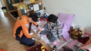 ▲ 할머니댁을 방문해 혈압체크 등 건강상태를 확인중인 모습 ©최윤선 객원기자 |