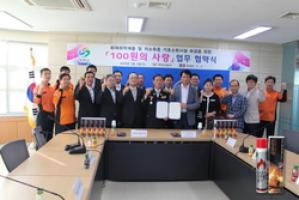 마산소방서(서장 김태봉)는 지난 4일 오후 5시 회의실에서 간이소화용구 생산업체인 한성B.C.C와 ‘100원의 사랑’ 업무협약식을 체결했다고 밝혔다.