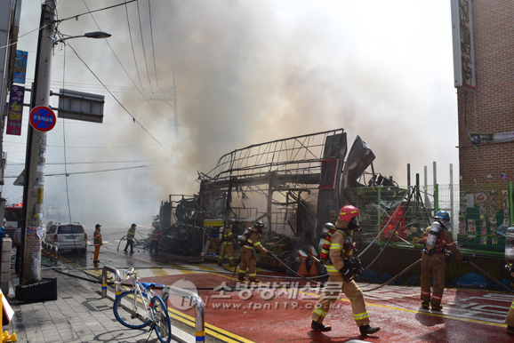| ▲ 소방대가 철물점에서 발생한 화재를 진압하고 있다. © 시흥소방서 제공 |