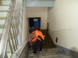 ▲ 경남농아인지원센터 지하1층이 침수됨에 따라 배수작업을 실시 중인 모습 ©최윤선 객원기자 |
