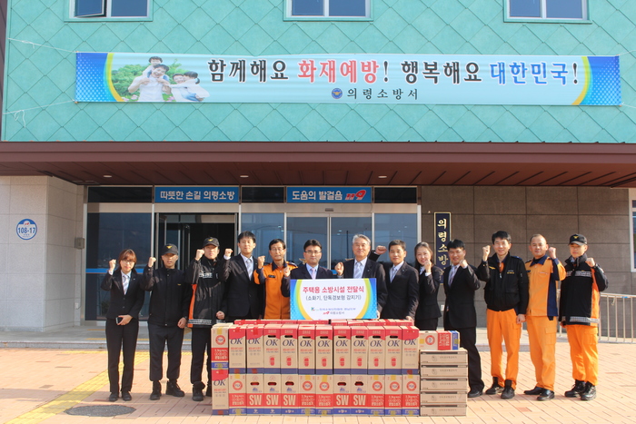 의령소방서(서장 오경탁)는 9일 한국소방안전협회 경남지부에서 의령군 화재취약계층에게 기초소방시설 100세트(소화기, 단독경보형 감지기)를 기증하는 행사를 가졌다.